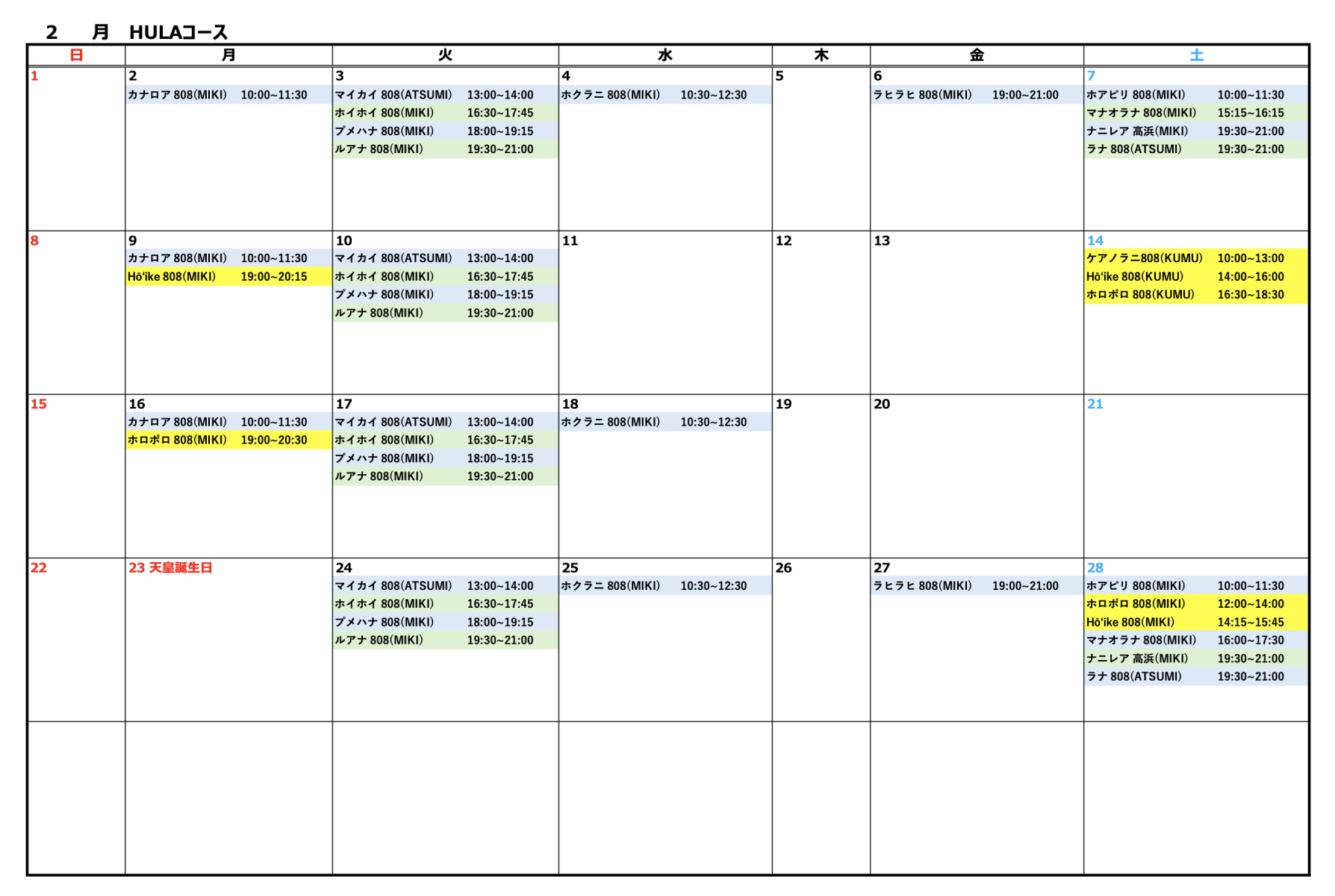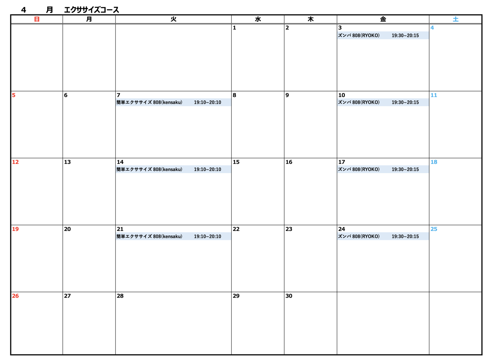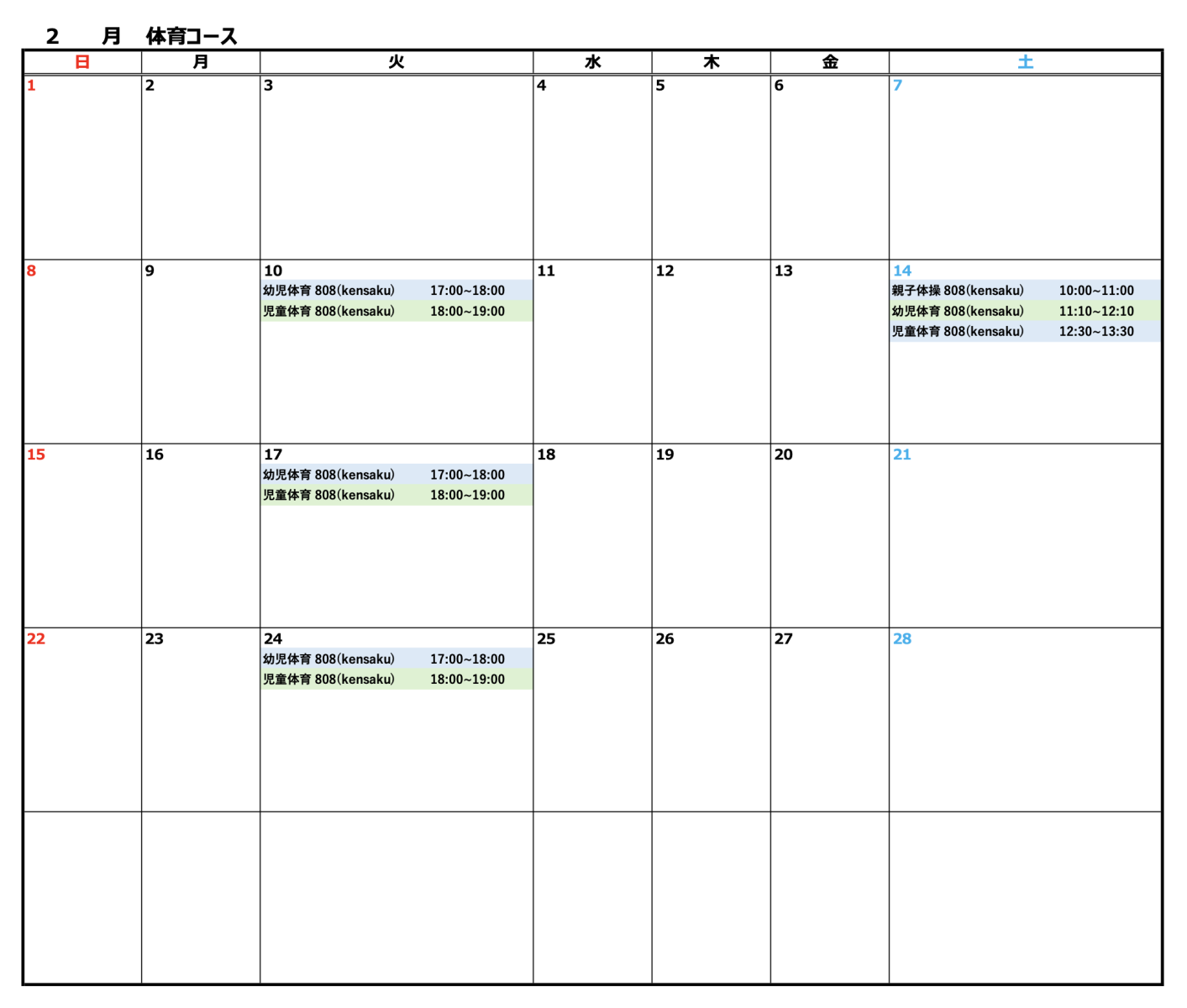 ※土曜日の体育クラス:10月の振替レッスンを1月に行いますので、1月は4回レッスンとなります。