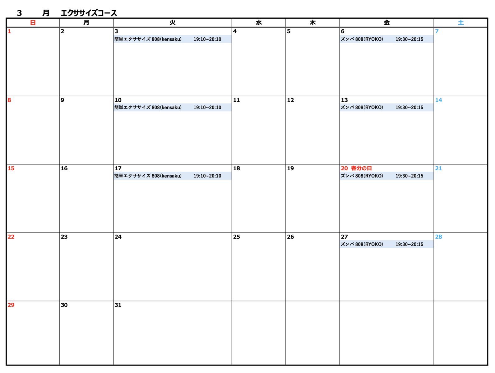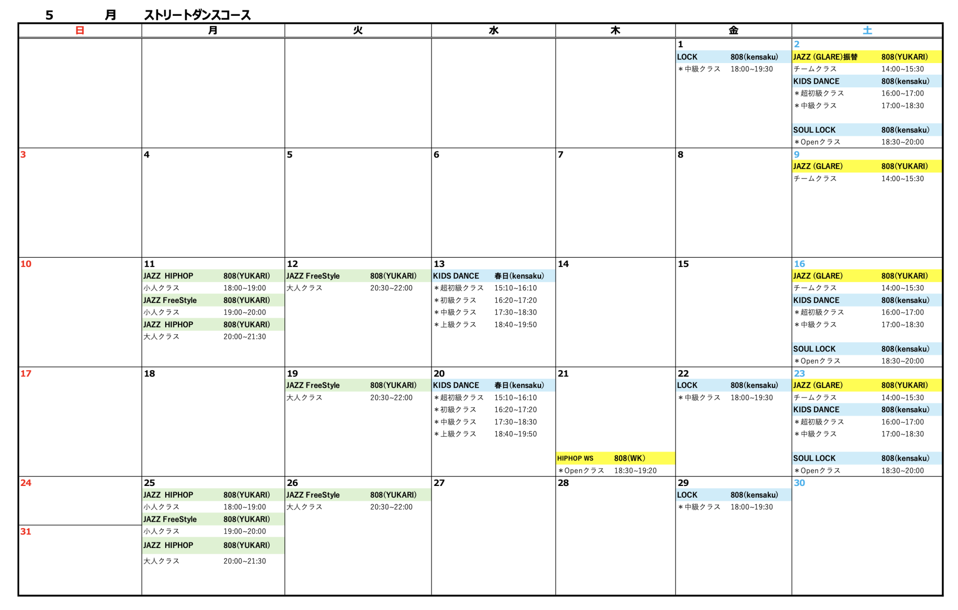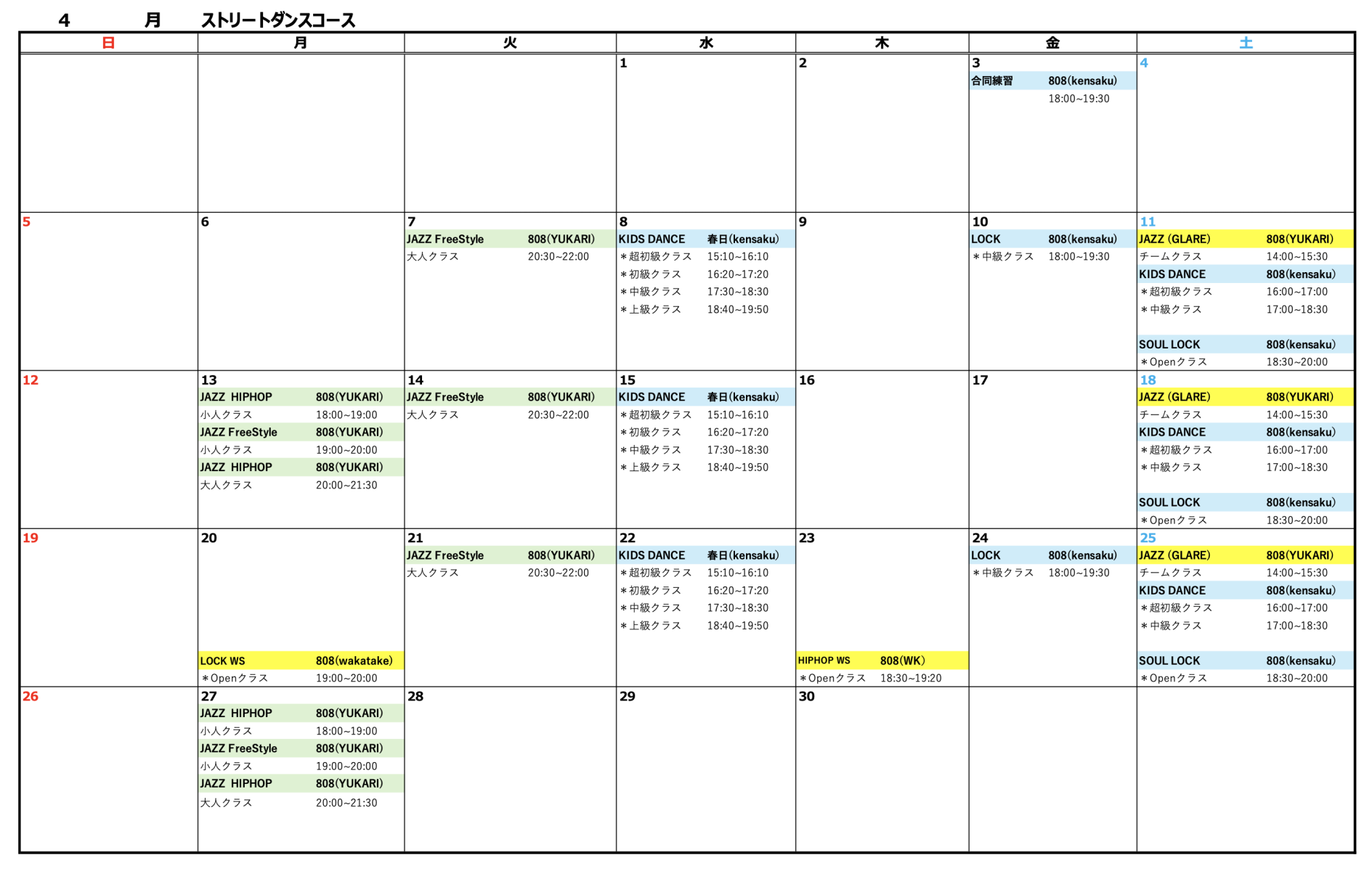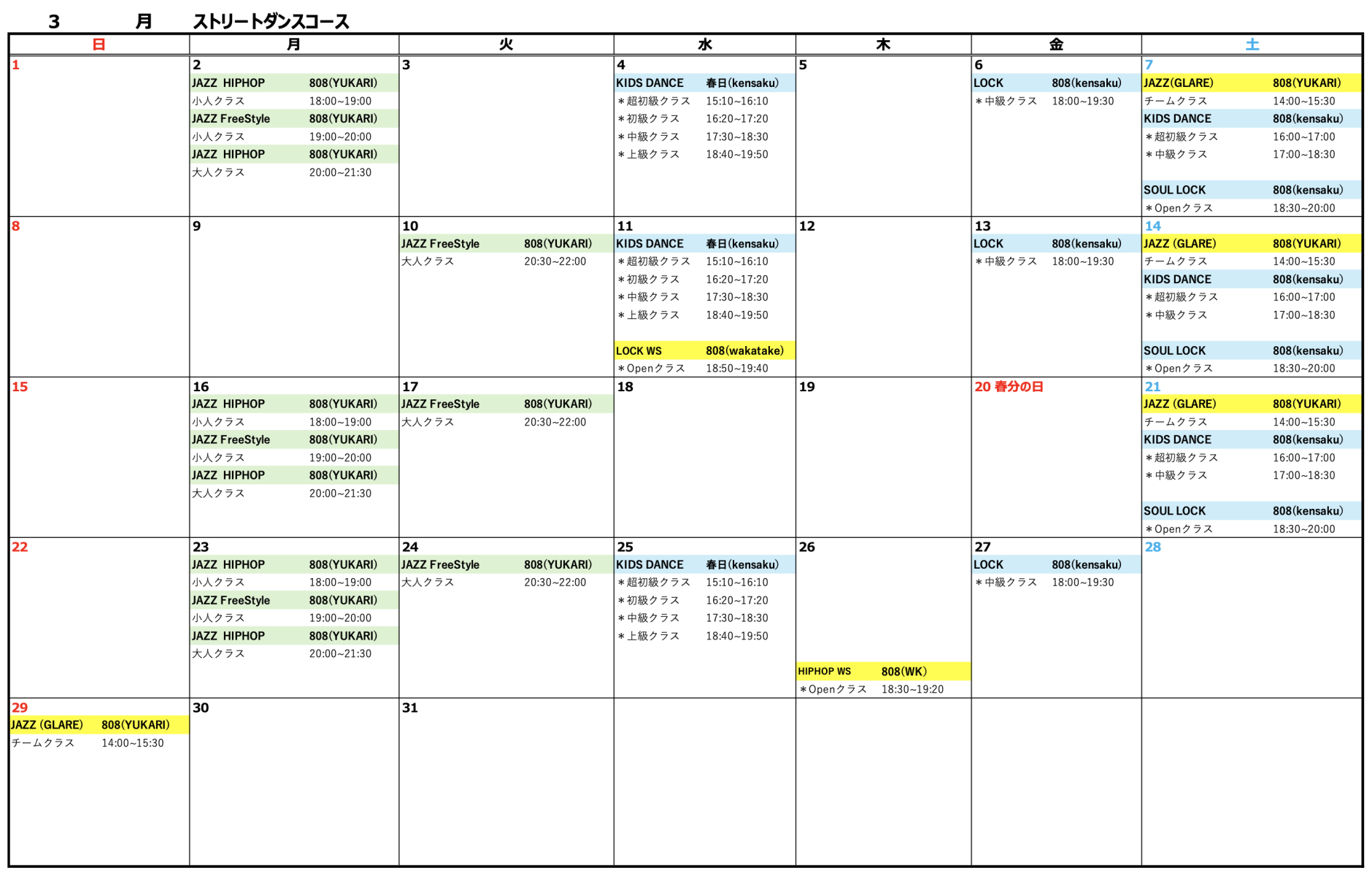 ※3月29日(日)JAZZ←3月28日(土)分の振替レッスン